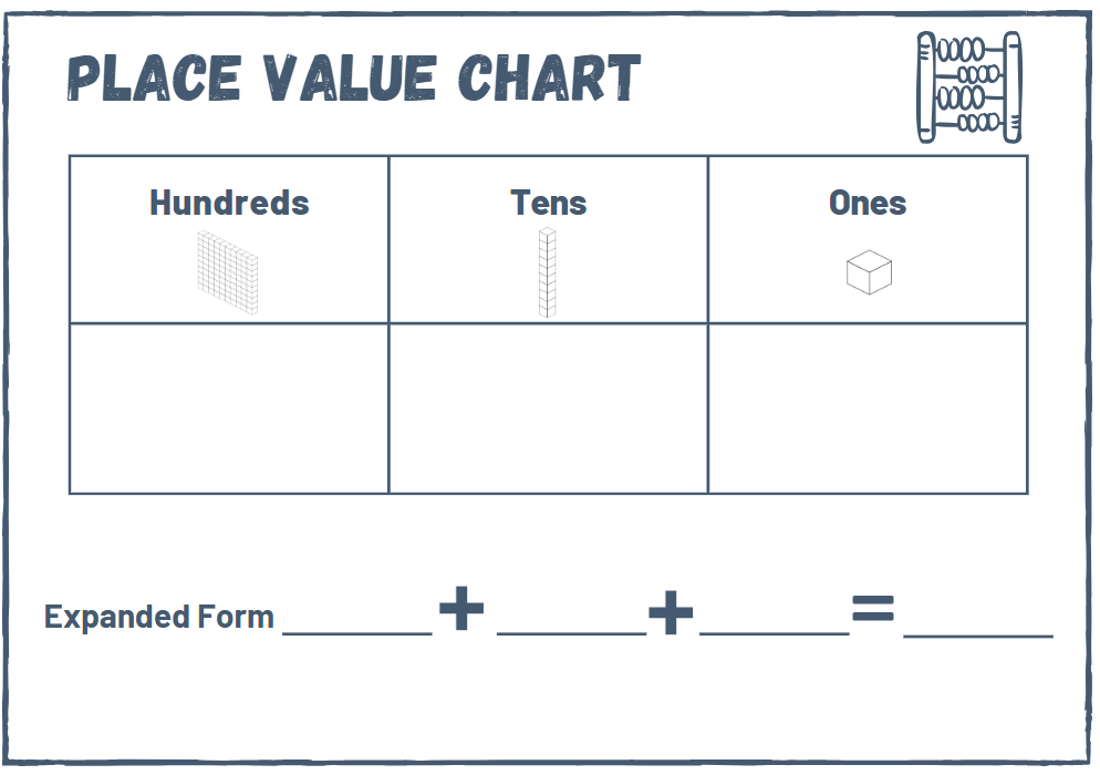 Example: In a lesson on place value, use a place value chart graphic organiser to model how to partition a three-digit number. Write the number into the organiser (Hundreds | Tens | Ones), and show the partitioning (eg 300 + 20 + 6)